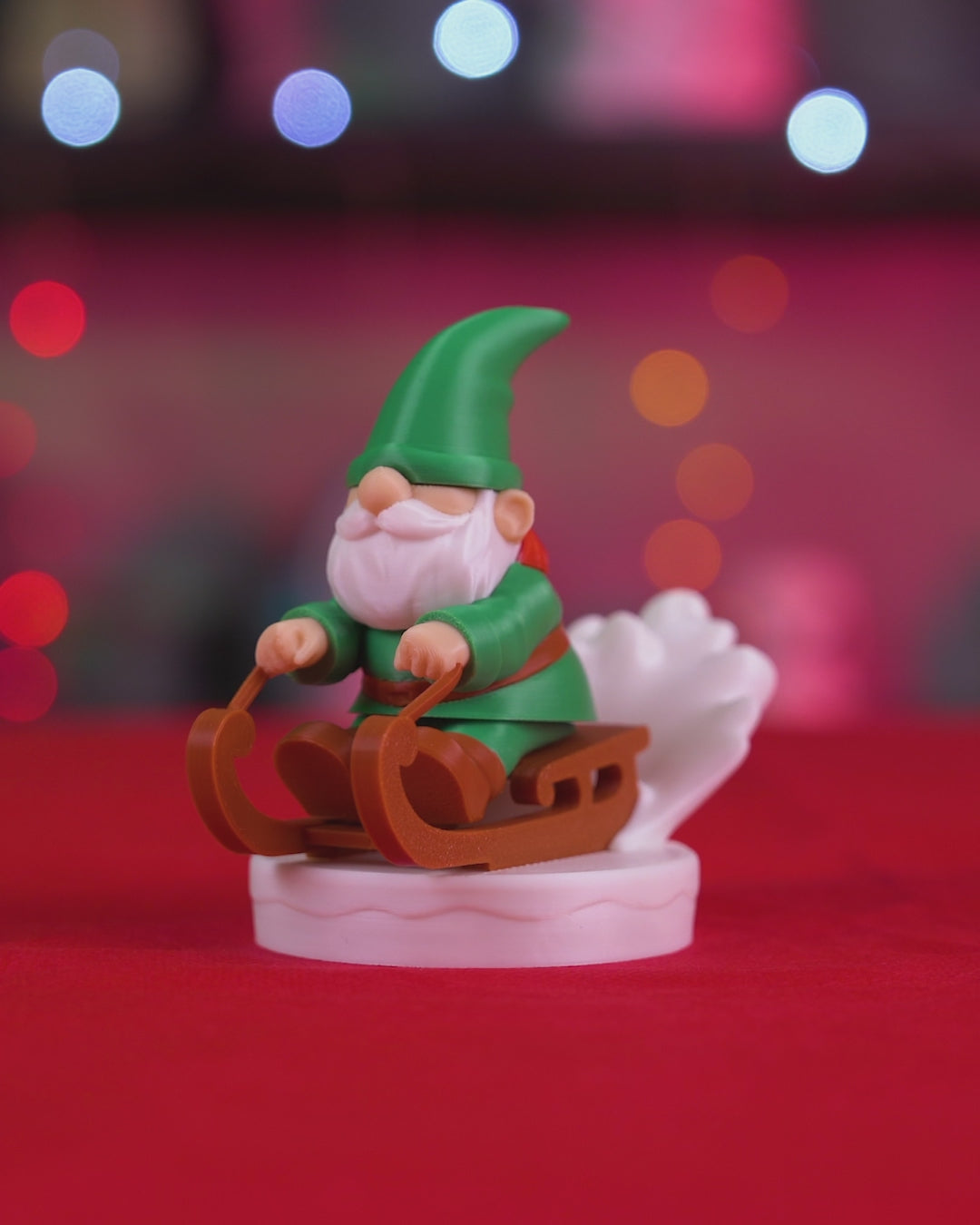 Racing through snowy hills on a trusty sled, this thrill-seeker captures the excitement of a perfect winter day in motion.